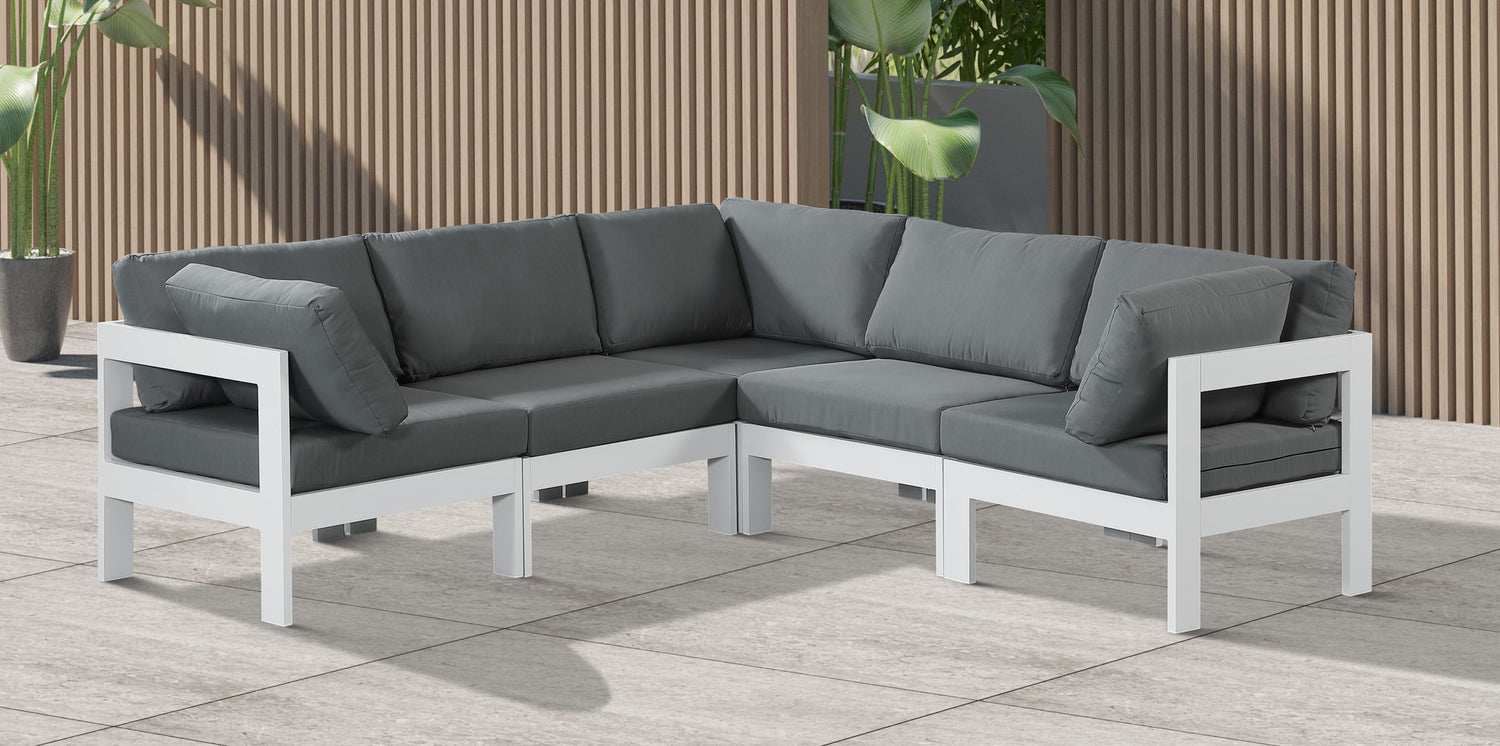 Nizuc - Outdoor Patio 5 Piece Modular Corner Sectional With White Frame - Gray