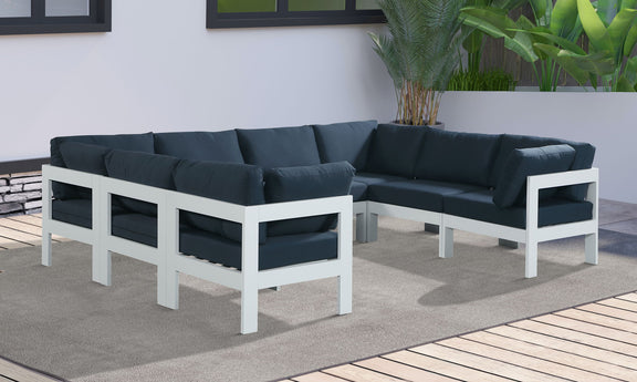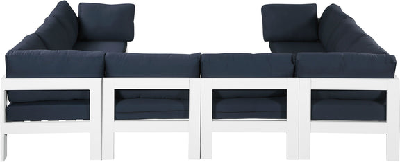 Nizuc - Outdoor Patio 8 Piece Modular U-Shaped Sectional With White Frame - Navy