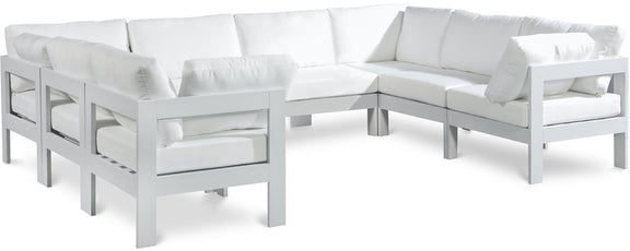 Nizuc - Outdoor Patio 8 Piece Modular U-Shaped Sectional With White Frame - White