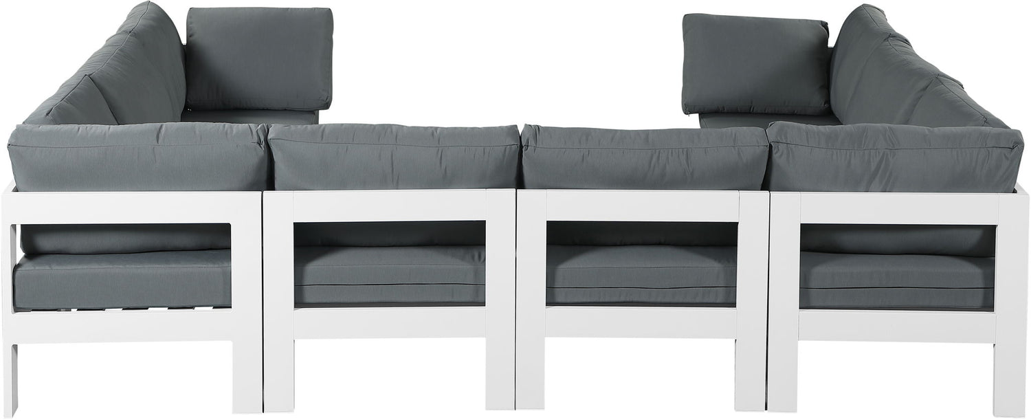 Nizuc - Outdoor Patio 8 Piece Modular U-Shaped Sectional With White Frame - Gray