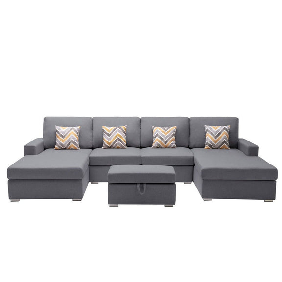 Nolan - 5 Piece Double Chaise Sectional Sofa With Interchangeable Legs, Storage Ottoman, And Pillows - Gray