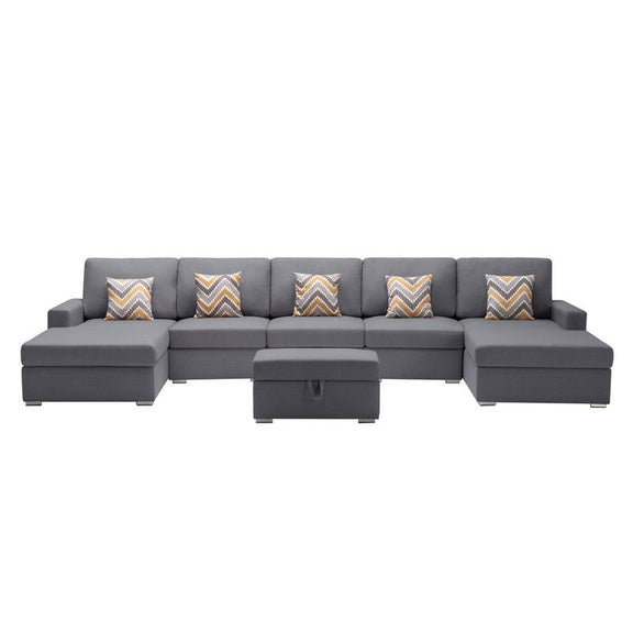 Nolan - 6 Piece Double Chaise Sectional Sofa With Interchangeable Legs, Storage Ottoman, And Pillows - Gray