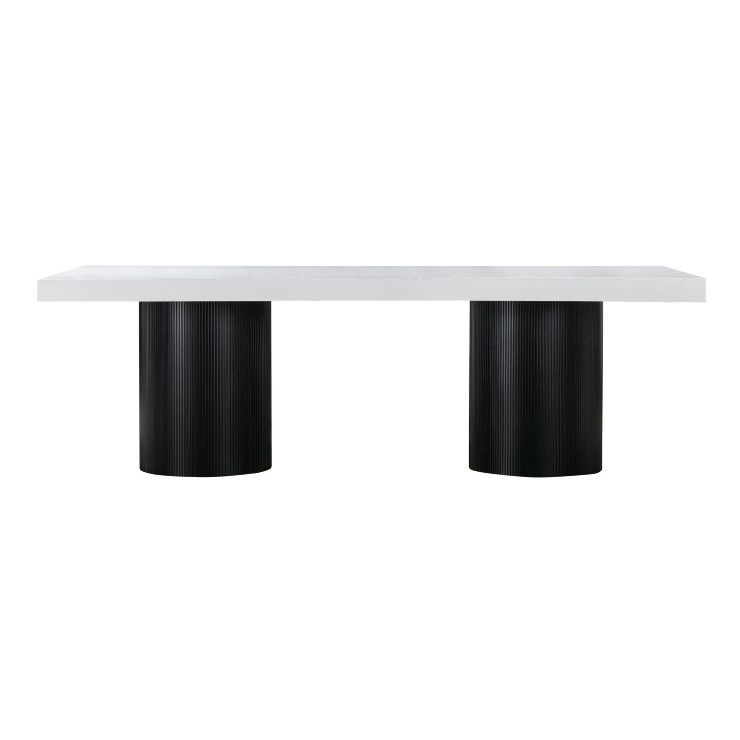 The clean-cut simplicity of the Nova Table with its statement conical legs, makes it the perfect bold yet versatile piece to elevate your dining experience. Featuring a glossy white lacquer top contrasted with 2 beautifully crafted black pedestal legs, this two-toned minimalistic table will undeniably be an accessory to any dining room.