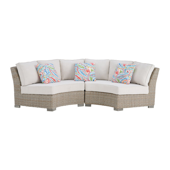 Ollie - Curved Loveseat With 3 Multi Color Pillows - Tan And Olefin White Cream