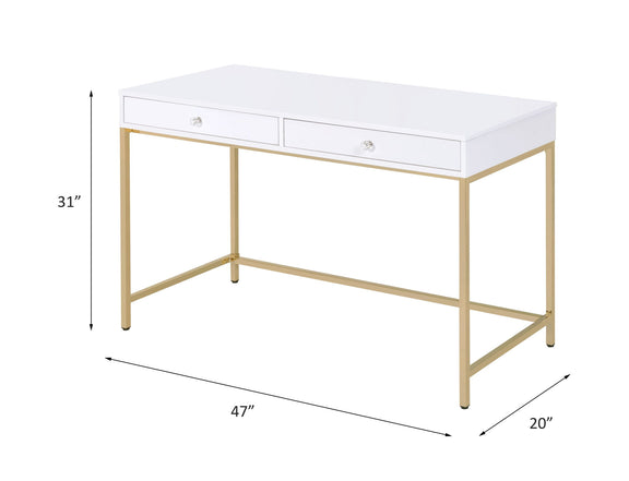 Ottey - High Gloss Gold Writing Desk - White