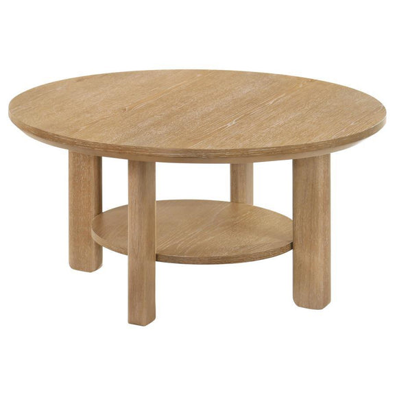Ottowa - 36" Round Wood Cocktail Coffee Table Washed - Light Oak