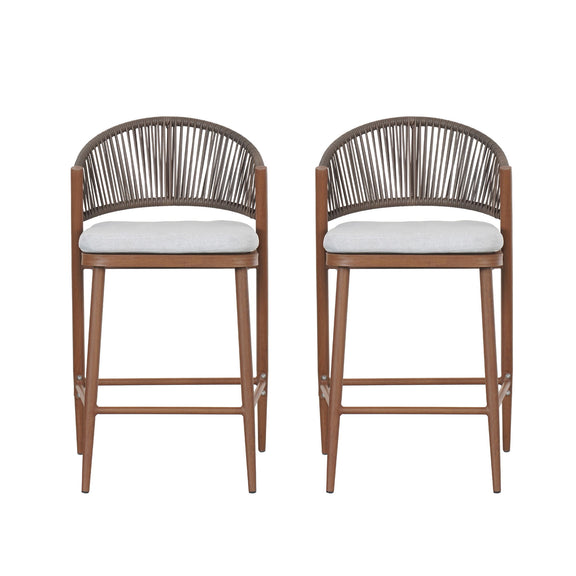Outdoor Counter Height Aluminum Frame Counter Stools With Scallop Shaped Backrest & Water Resistant Cushions (Set of 2) - Maple