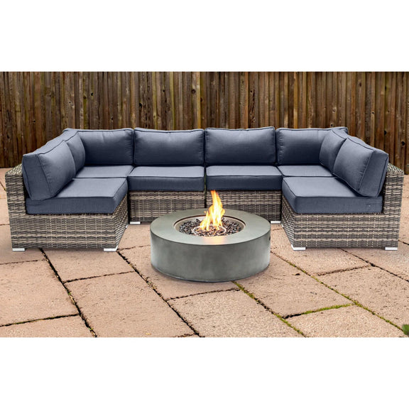Outdoor 7 Piece Sectional Seating Group With Cushions And Fire Pit - Gray / Navy