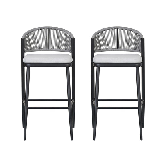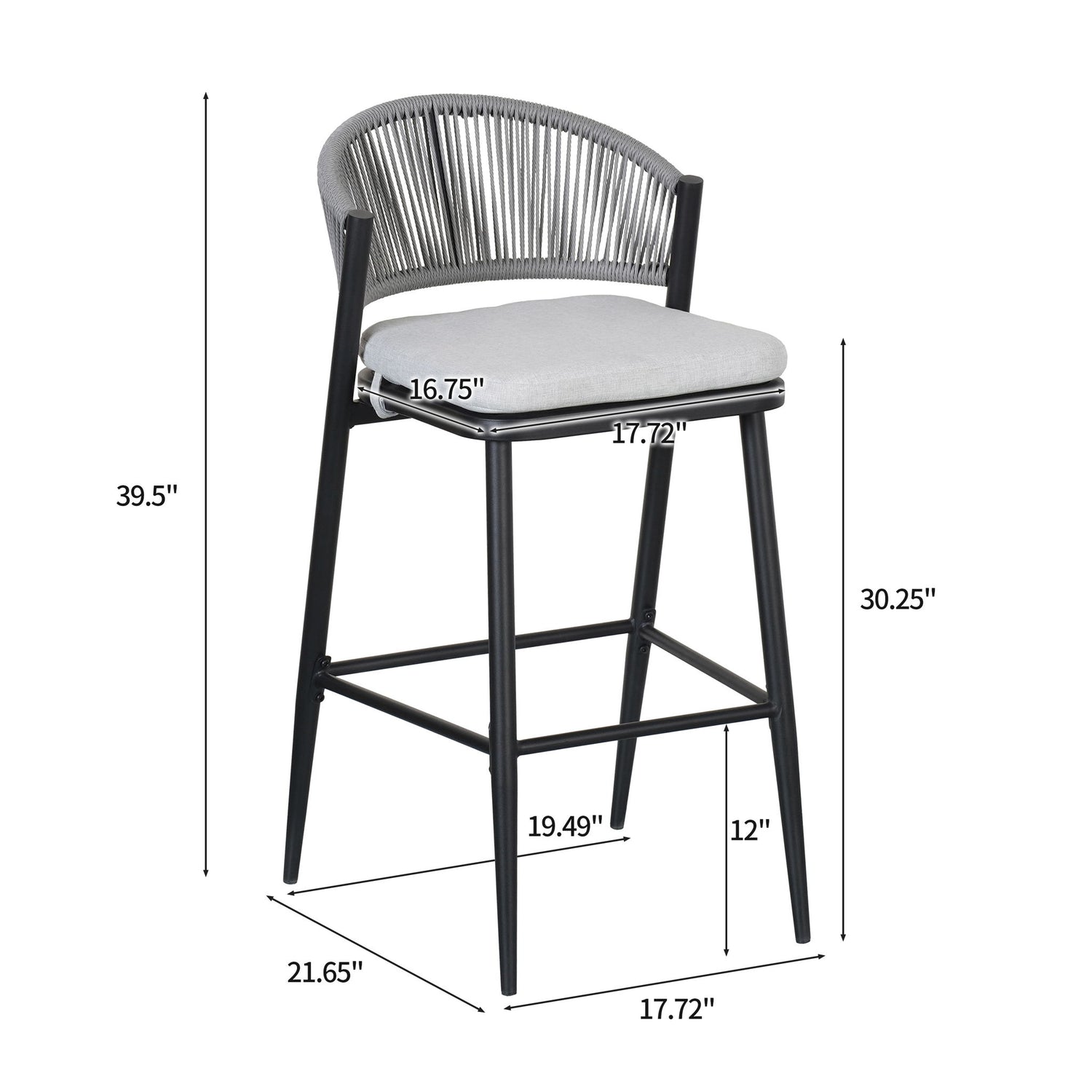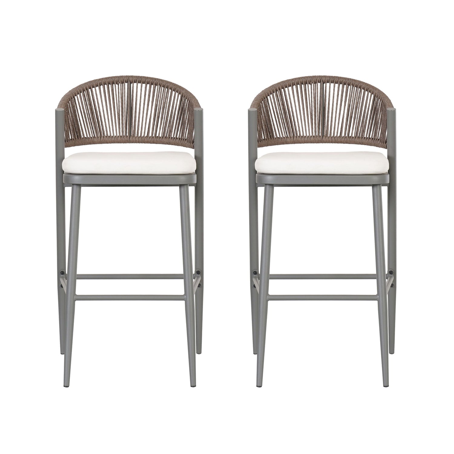 Outdoor Bar Height Metal Frame Counter Stools With Scallop Shaped Backrest & Water Resistant Cushions (Set of 2) - Matte Gray