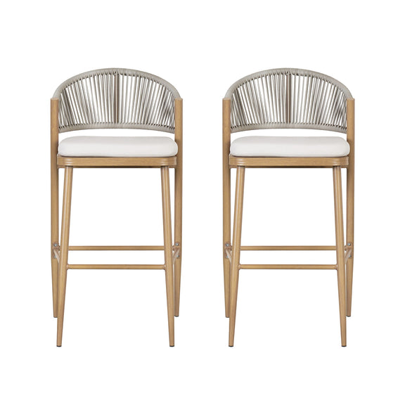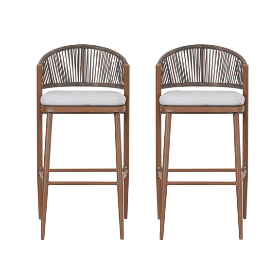 Outdoor Bar Height Aluminum Frame Counter Stools With Scallop Shaped Backrest & Water Resistant Cushions (Set of 2) - Maple