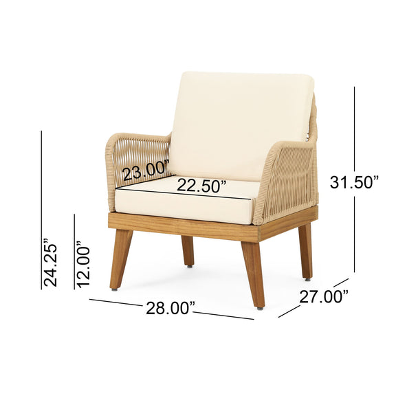 - Durable Acacia Wood: Crafted from durable acacia hardwood, this outdoor chair boasts a solid, heavy frame that naturally withstands the elements, ensuring long-lasting durability and resistance to wear and tear.