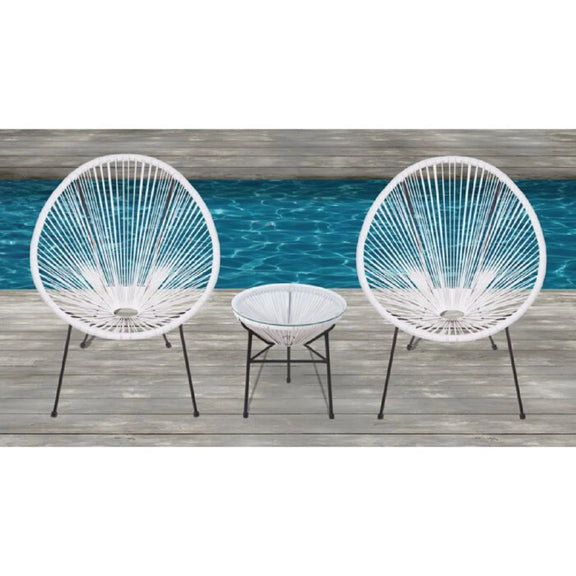 3 Piece Rattan Outdoor Seating Set With Glass Top Table Frame - Turquoise