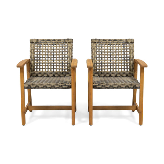 Outdoor Dining Chair (Set of 2), Teak Acacia Wood Frame - Natural Stained