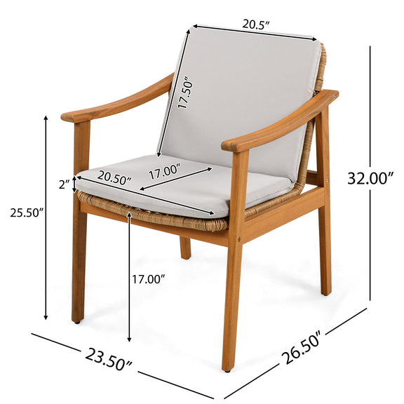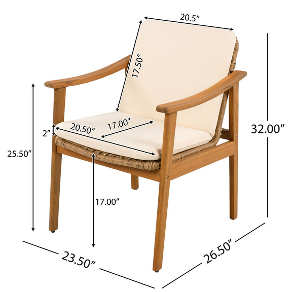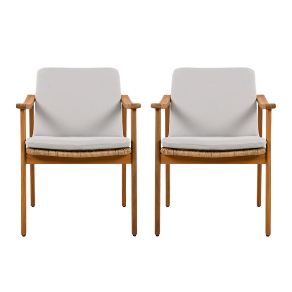• Durable & Weather-Resistant Build: Crafted with a sturdy acacia wood frame and PE wicker seat, these chairs resist outdoor elements, ensuring long-lasting use.