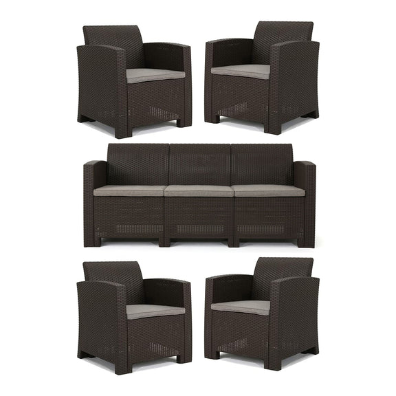 Outdoor Faux Wicker Rattan Style Chat Set With Water Resistant Cushions, 5 Pieces Set - Brown / Mix Beige