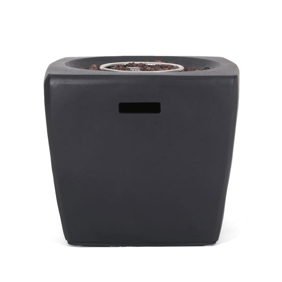 Outdoor Lightweight Concrete Square Fire Pit 40, 000 Btu With Built In Tank Storage - Dark Gray