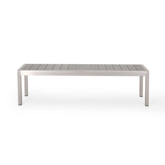 Outdoor Modern Aluminum Dining Bench With Faux Wood Seat, Durable And Elegant Design - Gray / Silver