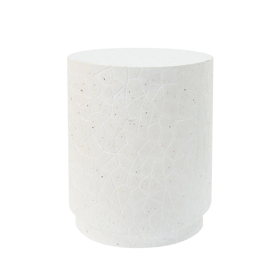 Outdoor Terrazzo Concrete Drum End Table, Living Room Accent Table - White Terrazzo