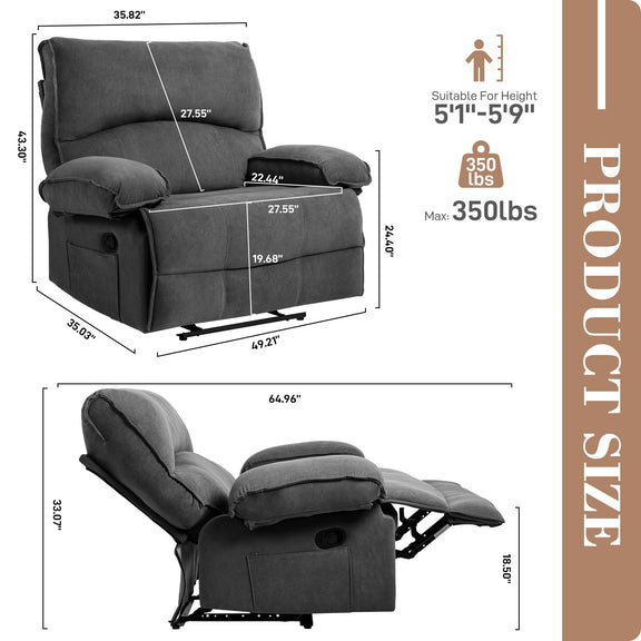 - Generous Seat Width: The recliner features a spacious 27.5" width, offering ample room to sit back and relax comfortably, whether you prefer to curl up or stretch out.
