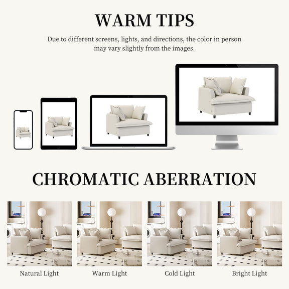 Oversized Single Seat Sofa Module For Modular Sectional Wide Seat, Armchair With Pillows Modern Upholstered Comfy Single Couch Lounge - Beige