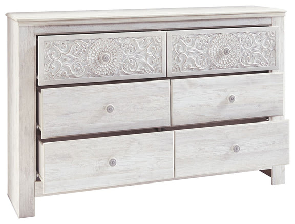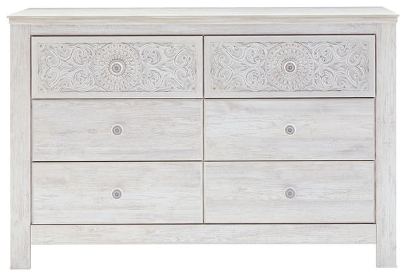 Paxberry - Six Drawer Dresser - Medallion Drawer Pulls - Whitewash
