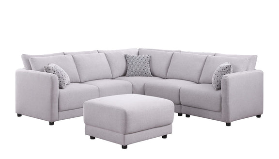 Penelope - Fabric Reversible L-Shape Sectional Sofa With Ottoman And Pillows - Light Gray