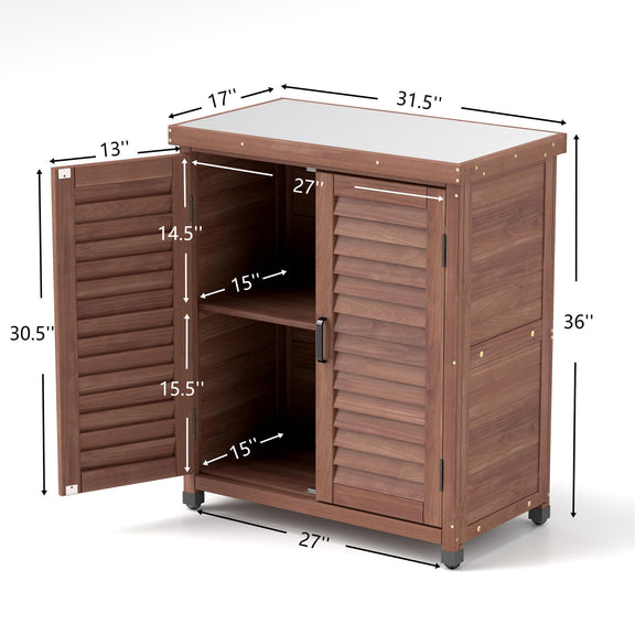 Potting Bench With Storage Cabinet And Metal Table Top For Outdoor