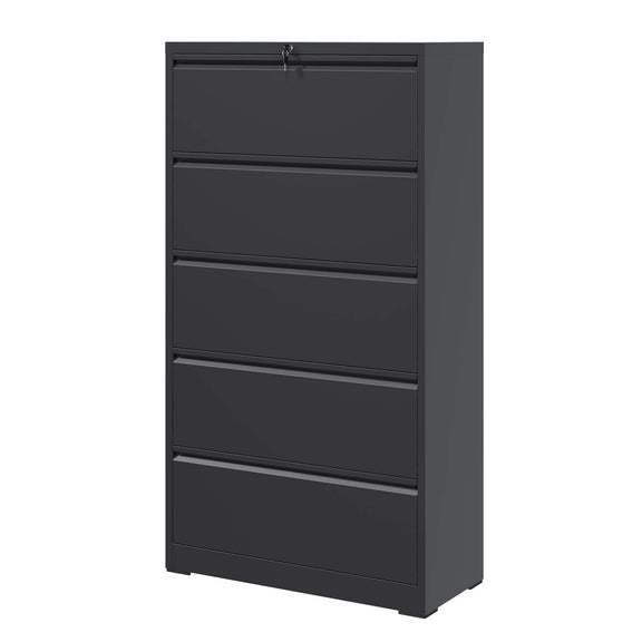 Modern 5 Drawer Steel Lateral File Cabinet With Lock, Metal Filing Cabinet For Home And Office - Gunmetal Black