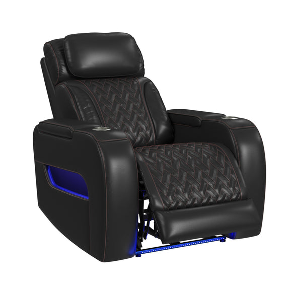Prime Time - P3 Recliner With LED And Wireless Charger Pocket - Jett Black With Red Stitching