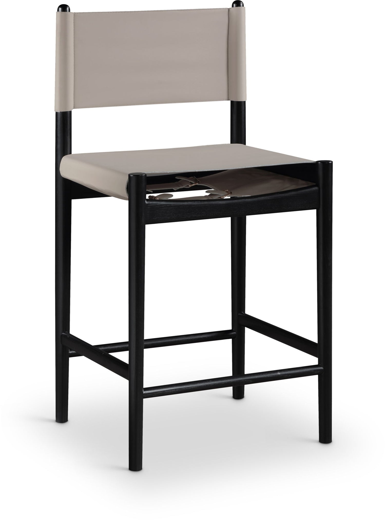 Sleek and contemporary, Rawlins counter stool in soft vegan leather makes a bold statement in any dining space. With a black ash wood frame and durable upholstery, it's as sturdy as it is glamorous. Elevate every meal with the effortlessly chic appeal of this modern stool.