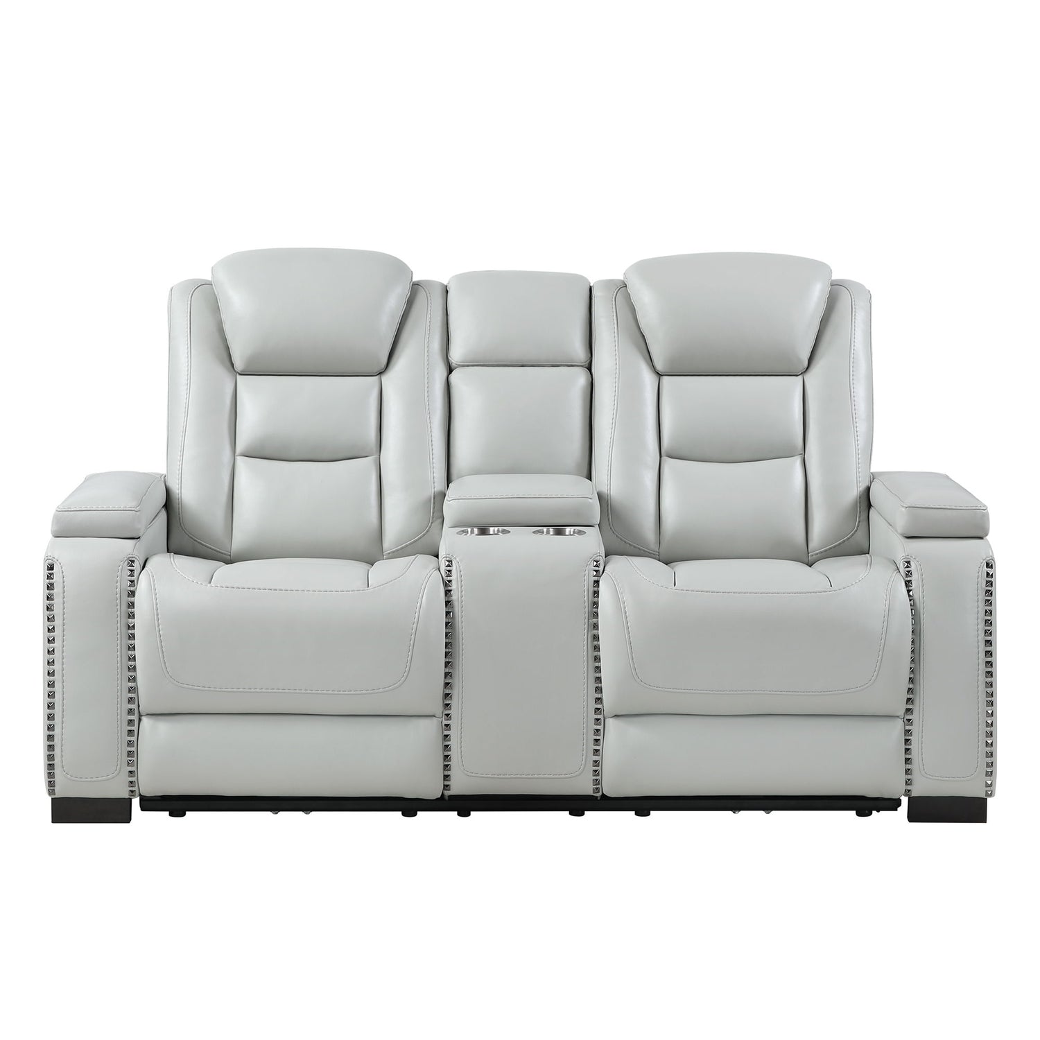 Power Sofa And Loveseat With Power Headrest, USB, LED, Bookshelf Arms, And Drop Down Table - Grey