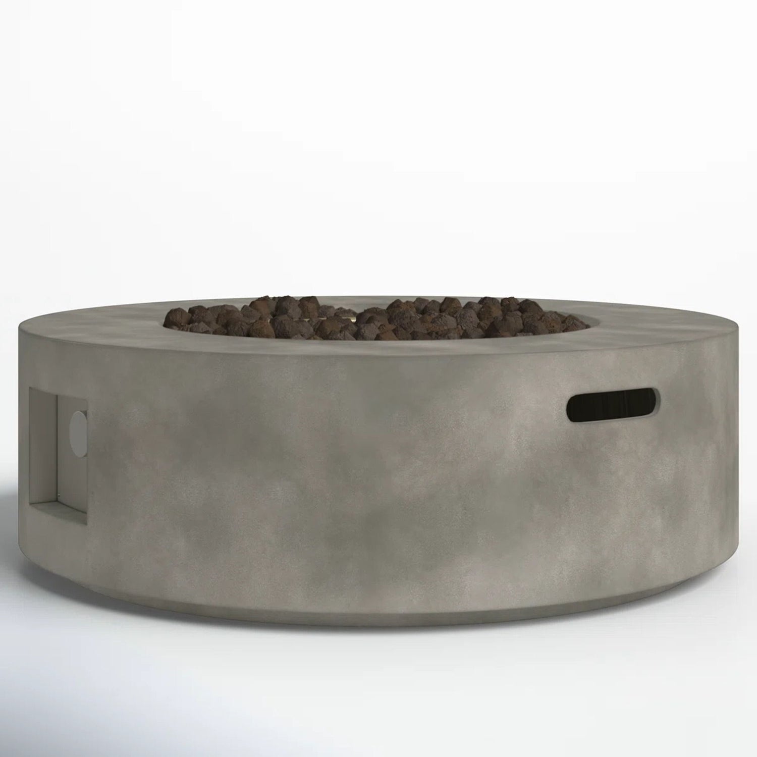 • Design and Material: This outdoor fire pit features a wide bowl design and low-profile silhouette, crafted from weather-resistant reinforced concrete. Its clean-lined round design complements a streamlined, modern look, making it a stylish addition to any outdoor space.