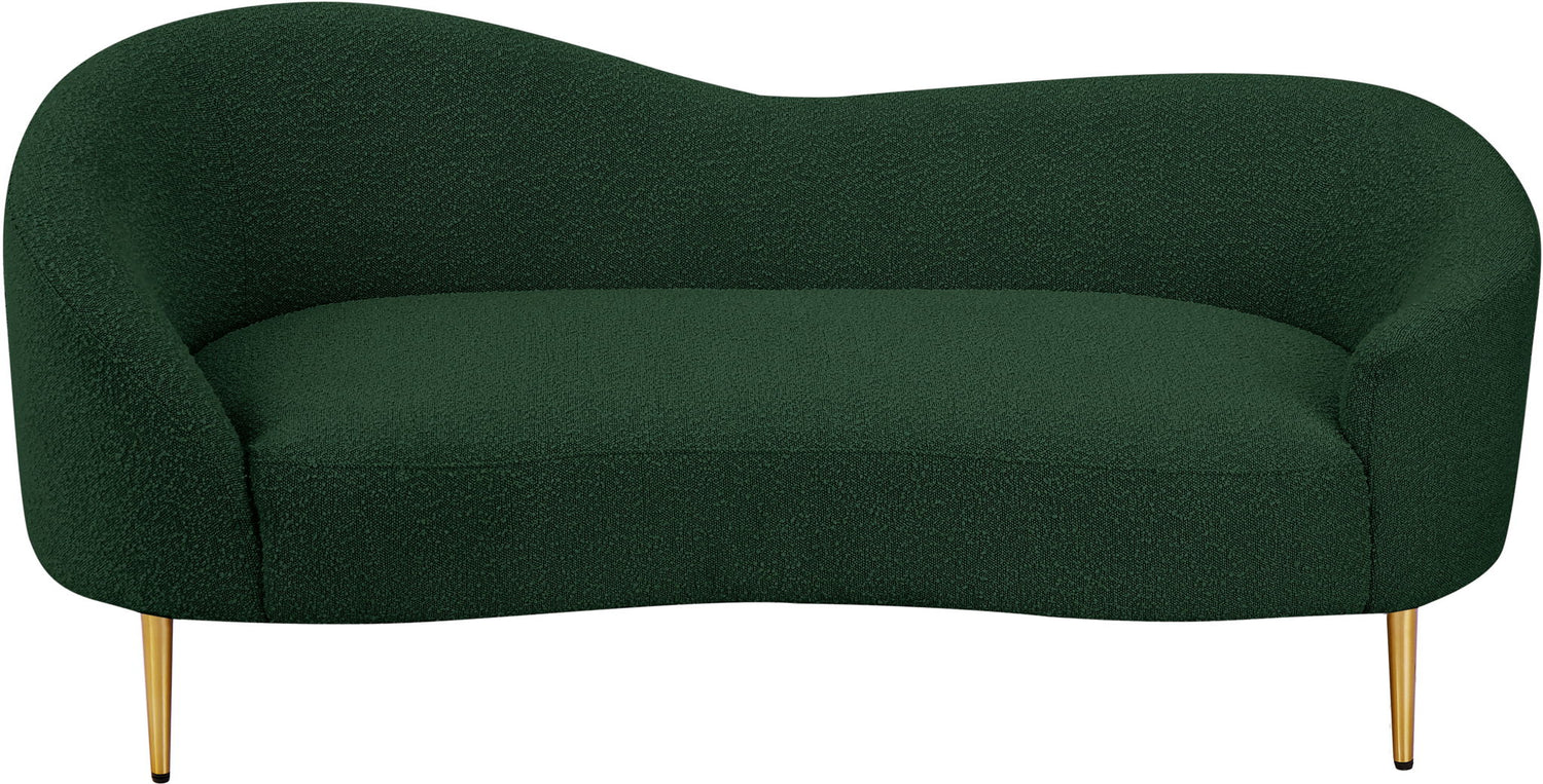 Impress family and guests alike with this Ritz Boucle Fabric Loveseat. Wrapped in a cozy boucle fabric, this loveseat exudes elegance and comfort. The gold metal legs add a touch of glamour to the overall design, making it a perfect addition to any modern living space. Sit back, unwind, and sink into the plush cushions of this chic and stylish loveseat.