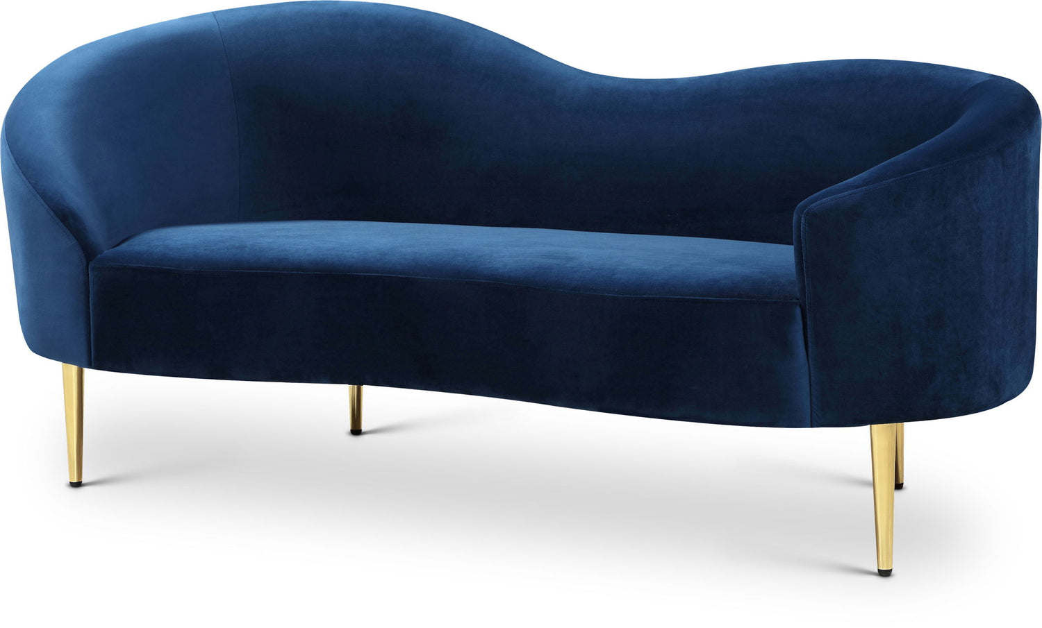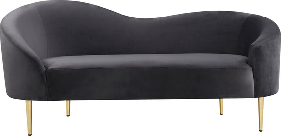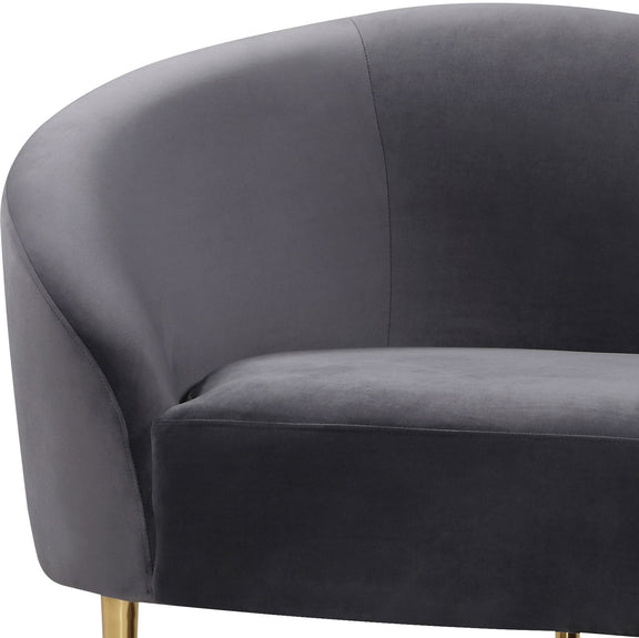 Get comfy while remaining chic in this elegant Ritz velvet loveseat. Plush-colored upholstery provides a soft texture that is pleasing to the senses, while its curved design offers a contemporary touch to your home furnishing. metal legs complement the loveseat's sophisticated color, creating a gallant piece anyone would be proud to display in their home.
