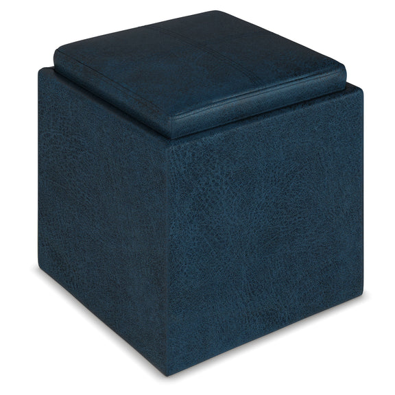 Rockwood - Cube Storage Ottoman With Tray - Denim Blue