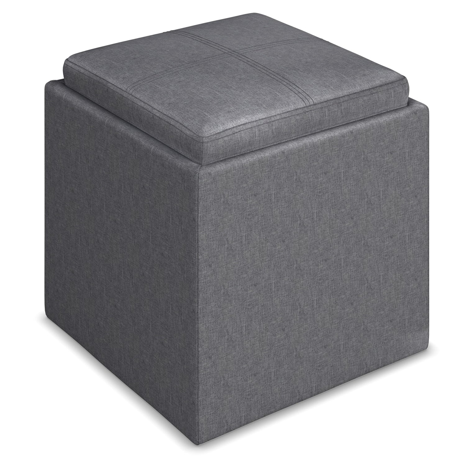 Rockwood - Cube Storage Ottoman With Tray - Slate Gray