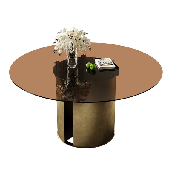 Round Dining Table With Glass Top, Kitchen And Living Room Furniture - Brown