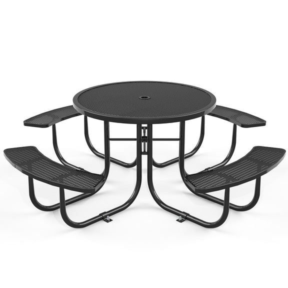 Round Outdoor Steel Picnic Table 46" With Umbrella Pole - Black