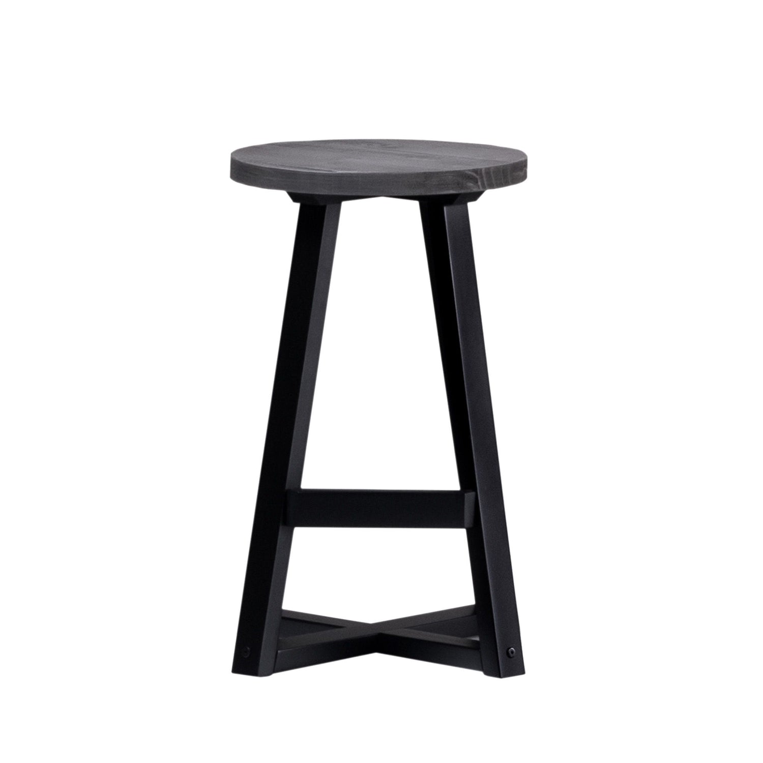 Rustic Distressed Solid Wood Round Dining Stool - Gray