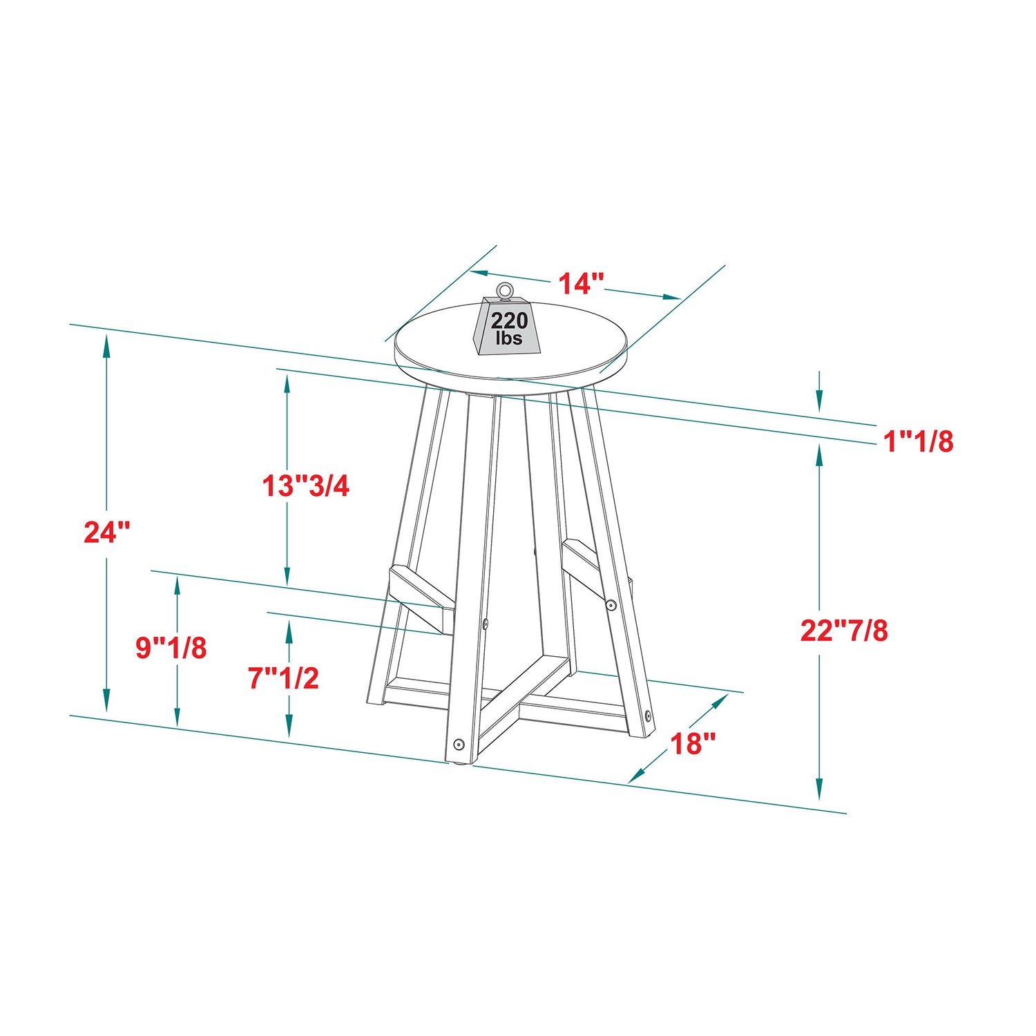 18.0"W x 18.0"D x 24.0"H - 7.0 lb