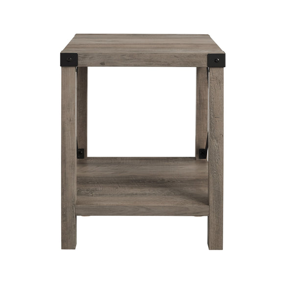 Rustic Industrial X 2 Tier Side Table - Gray Wash