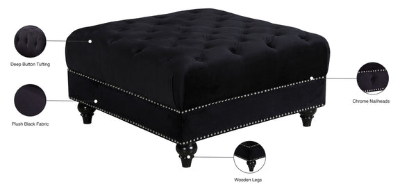 Take a load off when you prop your feet up on this Sabrina velvet ottoman. This sumptuously elegant ottoman serves not only as a luxurious foot rest, but doubles as a seat when you have extra company over. The velvet upholstery is rich and chic, and the addition of nail head trim adds to its sophisticated feel. Wooden legs with a turned design provide sturdy support for the unit, ensuring its long-lasting beauty and performance. Buy it on its own or as part of the Sabrina collection for a beautiful, cohesive look.