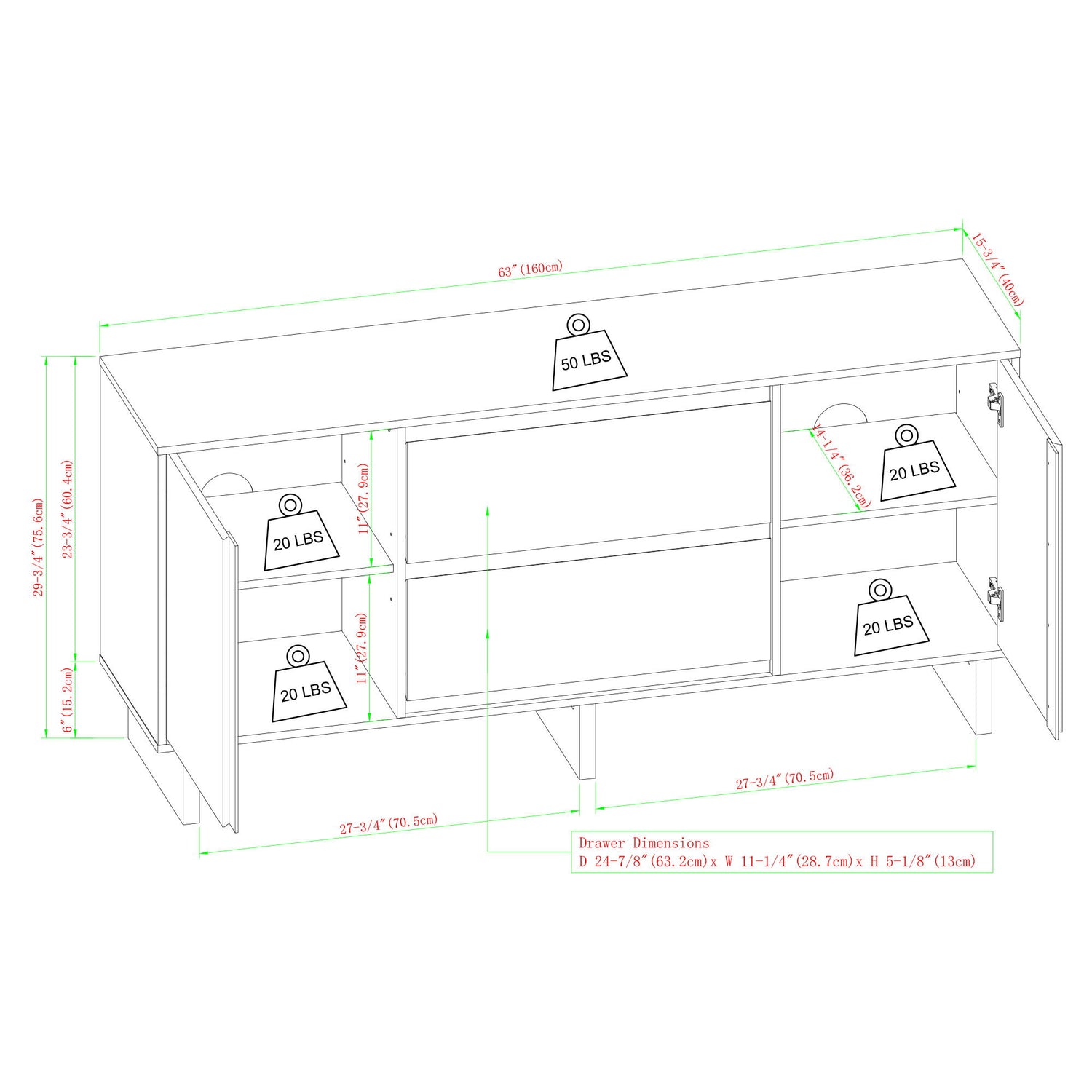 - Assembled dimensions 29 ¾” H x 63” L x 15 ¾” W