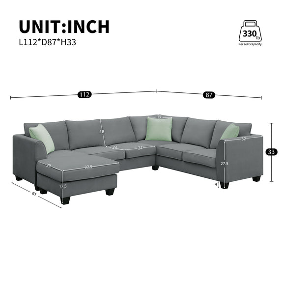Sectional Sofa Couches Living Room Sets, 7 Seats Modular Sectional Sofa With Ottoman, L Shape Fabric Sofa Corner Couch Set With 3 Pillows - Gray
