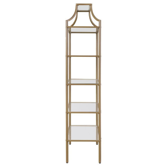 Serena - 5-Shelf Glass Bookshelf - Gold