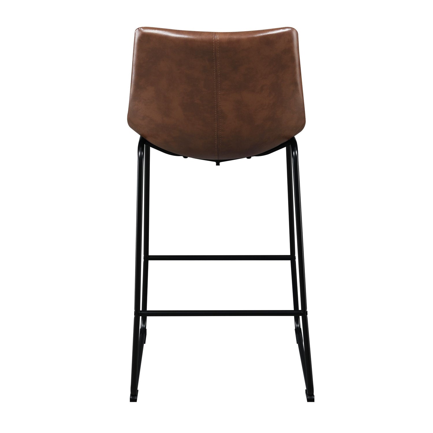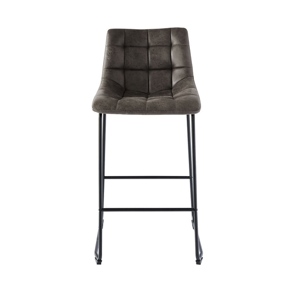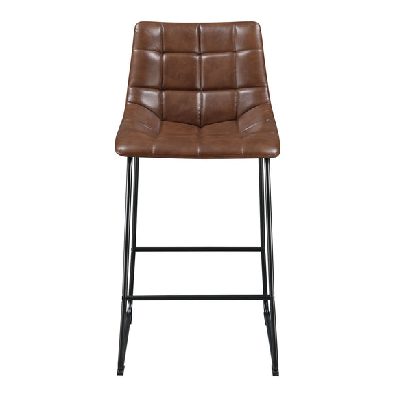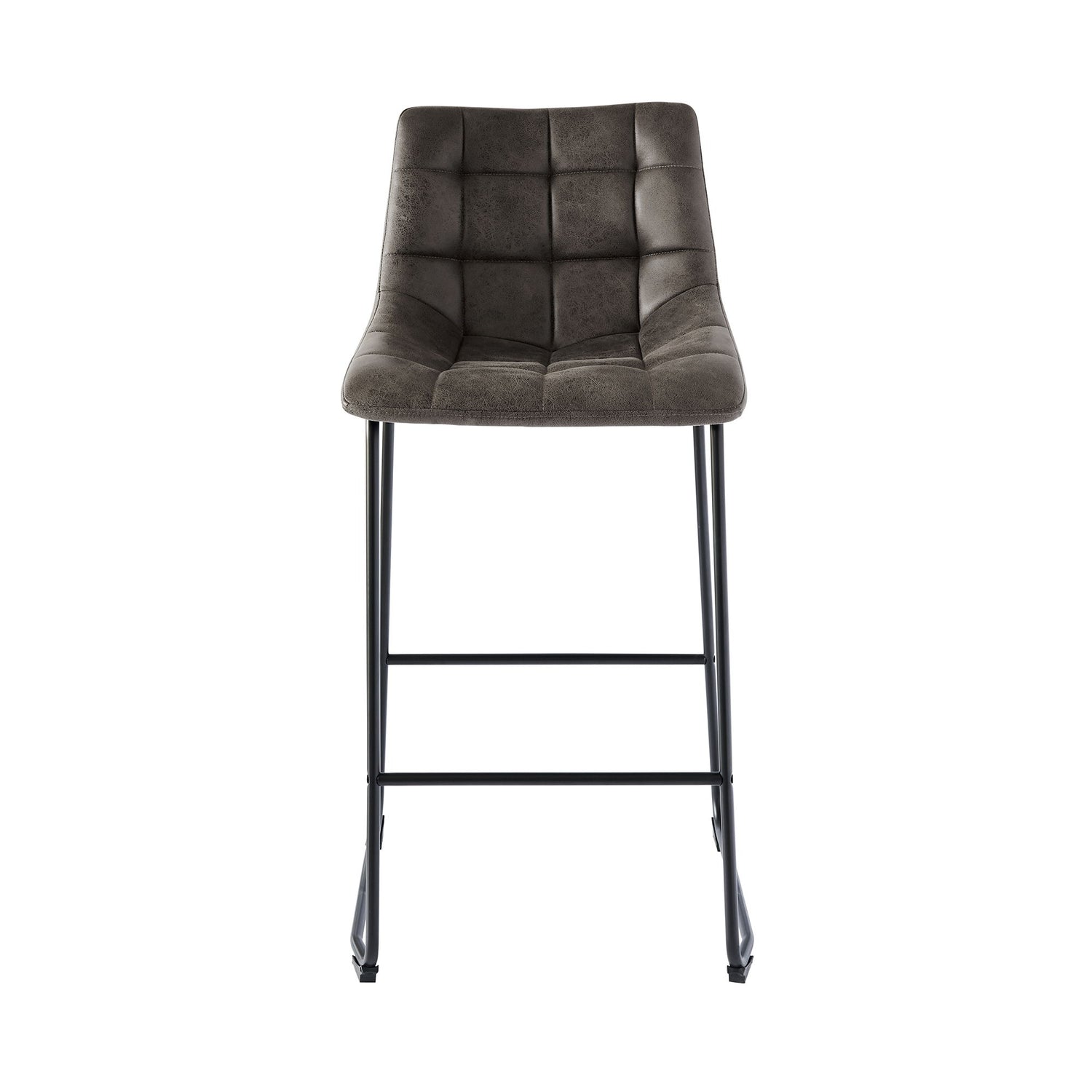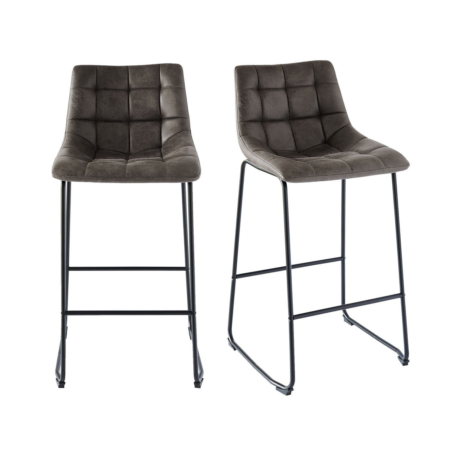 The Seth Metal Bar Stool Set is the missing piece to complete your home! This fashionable set comes with two bar stools and are upholstered in a faux leather fabric. The fabric features square stitching and tufting, adding extra flare to this already stylish set. These bar stools have a metal frame, which pairs perfectly with the faux leather; creating the ultimate rustic, industrial design. The seat and back are foam filled, ensuring hours of comfort while you sit back and catch up with friends. Stretchers along the front and back offer additional support, without losing style; making this set the perfect addition to your home!