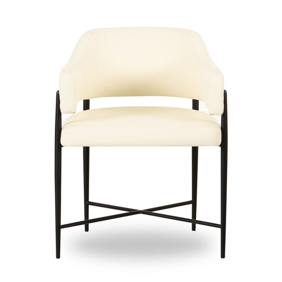 Meet the new Sezanne Collection: the fan-favorite frame reimagined in fresh textures and tones. Available as a dining chair or counter stool, each piece pairs sleek black iron with your choice of easy-to-clean cream or black vegan leather, and luscious fabrics rich in texture and built to repel spills. Style-forward yet everyday-friendly, these sculptural silhouettes bring modern contrast and cool composure to any space.