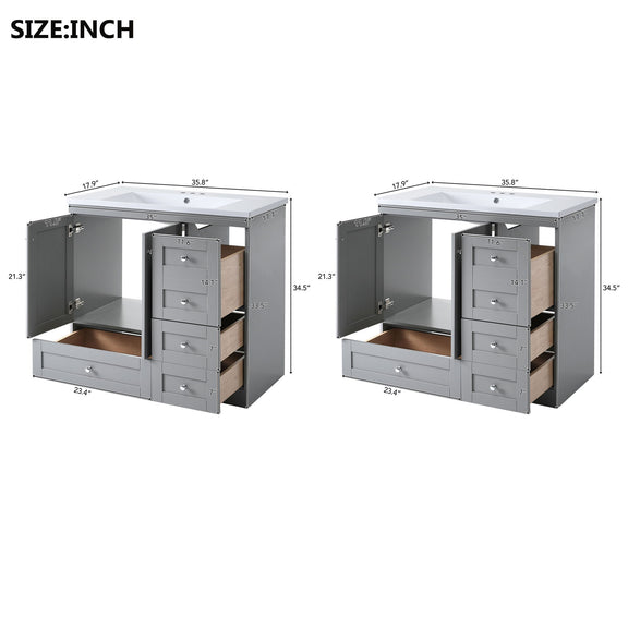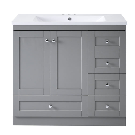 Shaker Style Free Standing Bathroom Vanity Cabinet With Sink, 4 Soft Close Drawers And 2 Soft Close Doors - Gray