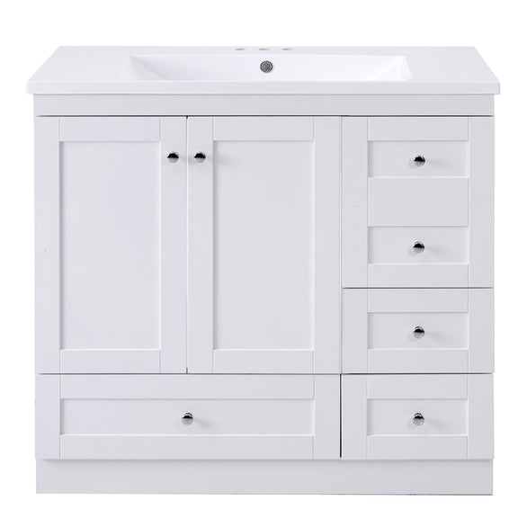Shaker Style Free Standing Bathroom Vanity Cabinet With Sink, 4 Soft Close Drawers And 2 Soft Close Doors - White