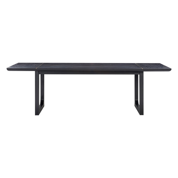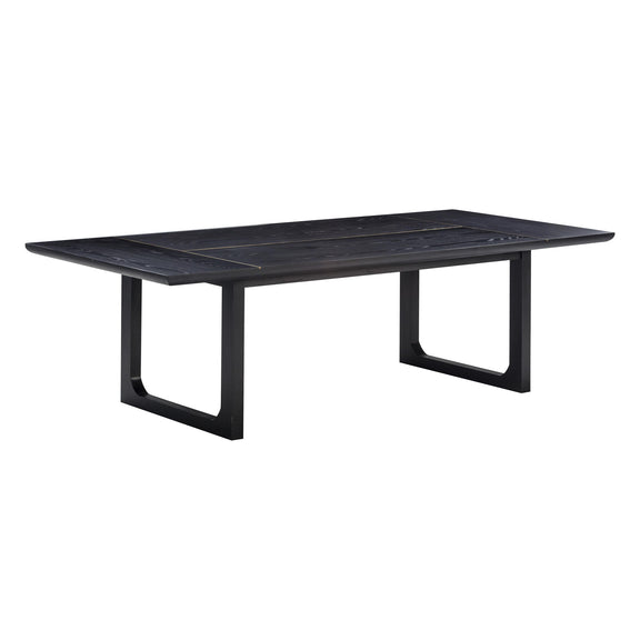 The Shiloh Black Ash Rectangular Dining Table is the perfect statement piece for any contemporary or modern dining room. This table features a sleek black ash finish with gold accents that will give your dining room an elegant and sophisticated look.The rectangular shape makes it perfect for entertaining, and cant sit 8-10 people.